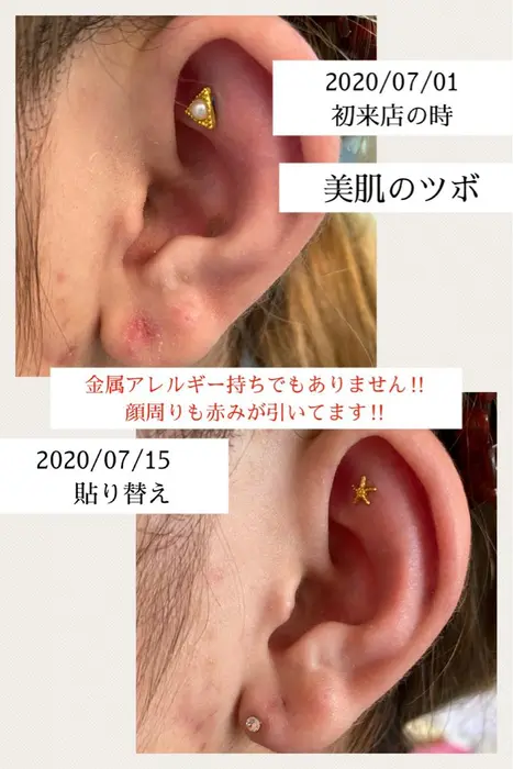 美肌のツボ 金属アレルギー持ちでもないのに 耳荒れがすごいお客様 肌荒れも酷かったのに 2週間後 Setsalon Churaku所属 浜比嘉 綾のヘアカタログ ミニモ